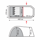 Большая палатка для комфортного отдыха на одном месте. В ней свободно разместятся четыре человека и все их вещи. Высота внутри палатки 185 см, в ней можно свободно стоять в полный рост, удобно переодеваться.