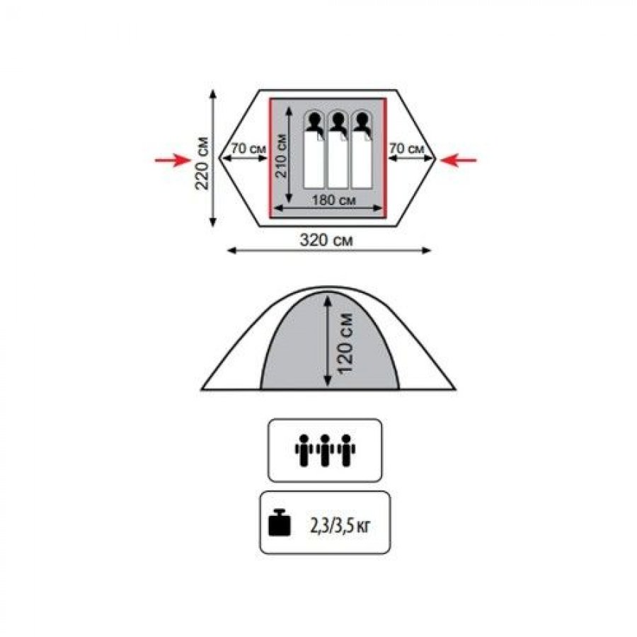 - Размер внутренней палатки ДхШхВ, см: 180 х 210 х 120