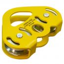 Двойной блок-ролик с расположенными в ряд роликами и фиксированными щечками. Запрессованные шарикоподшипники обеспечивают скорость и эффективность независимо от веса пользователя, температуры окружающей среды или влажности. Удобен и безопасен при организации переправ, полиспастов, при подъёме и спуске грузов. Благодаря перемычке, соединяющей щёчки, верёвка остаётся в блоке даже при полном разрушении оси блока. Конструкция исключает выщелкивание веревки во время движения. Рекомендован для проведения спасработ.