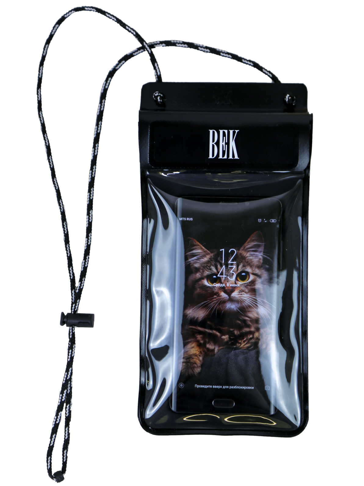 - Гермочехол снабжен регулируемым по длине шнурком для ношения на шее